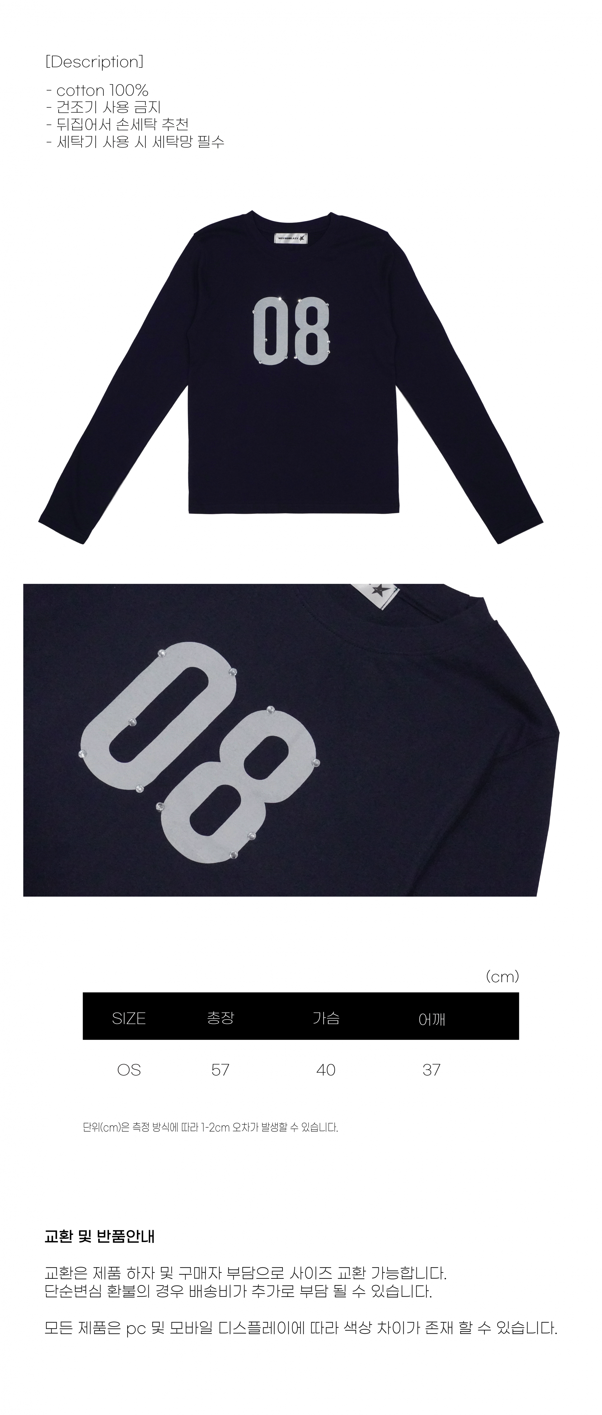 08 Rhinestone L/S (NAVY)