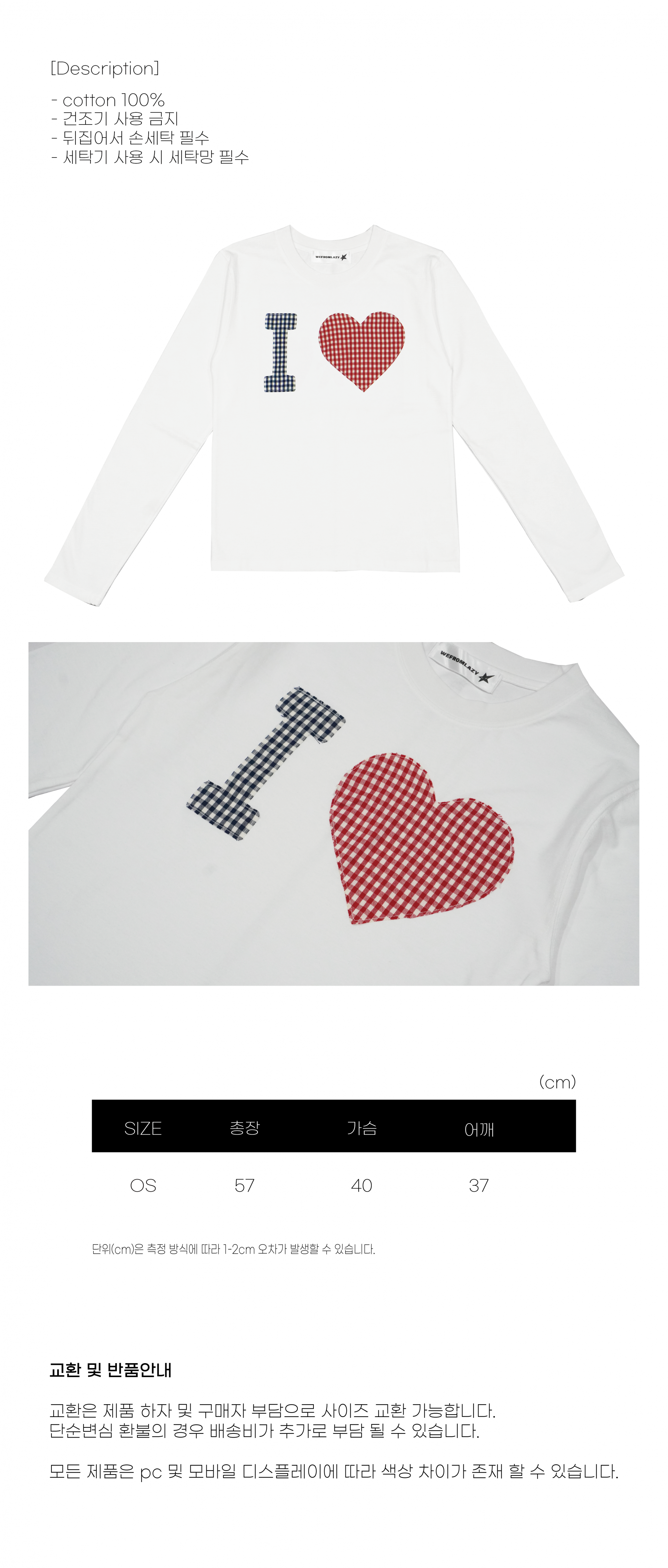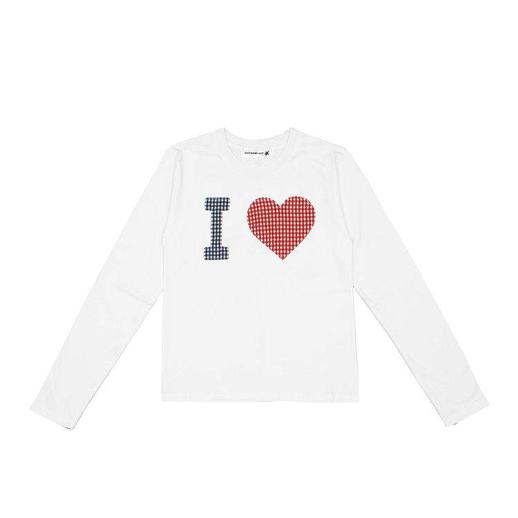 I LOVE CHECK PATTERN L/S (WHITE)